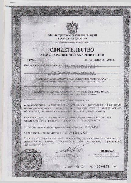 Муниципальное казенное общеобразовательное учреждение " Маджалисская средняя общеобразовательная школа №1"